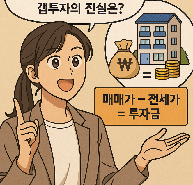 갭투자는 '매매가'와 '전세가'의 차액(Gap)만을 투자하여 집을 매입하는 방식입니다.