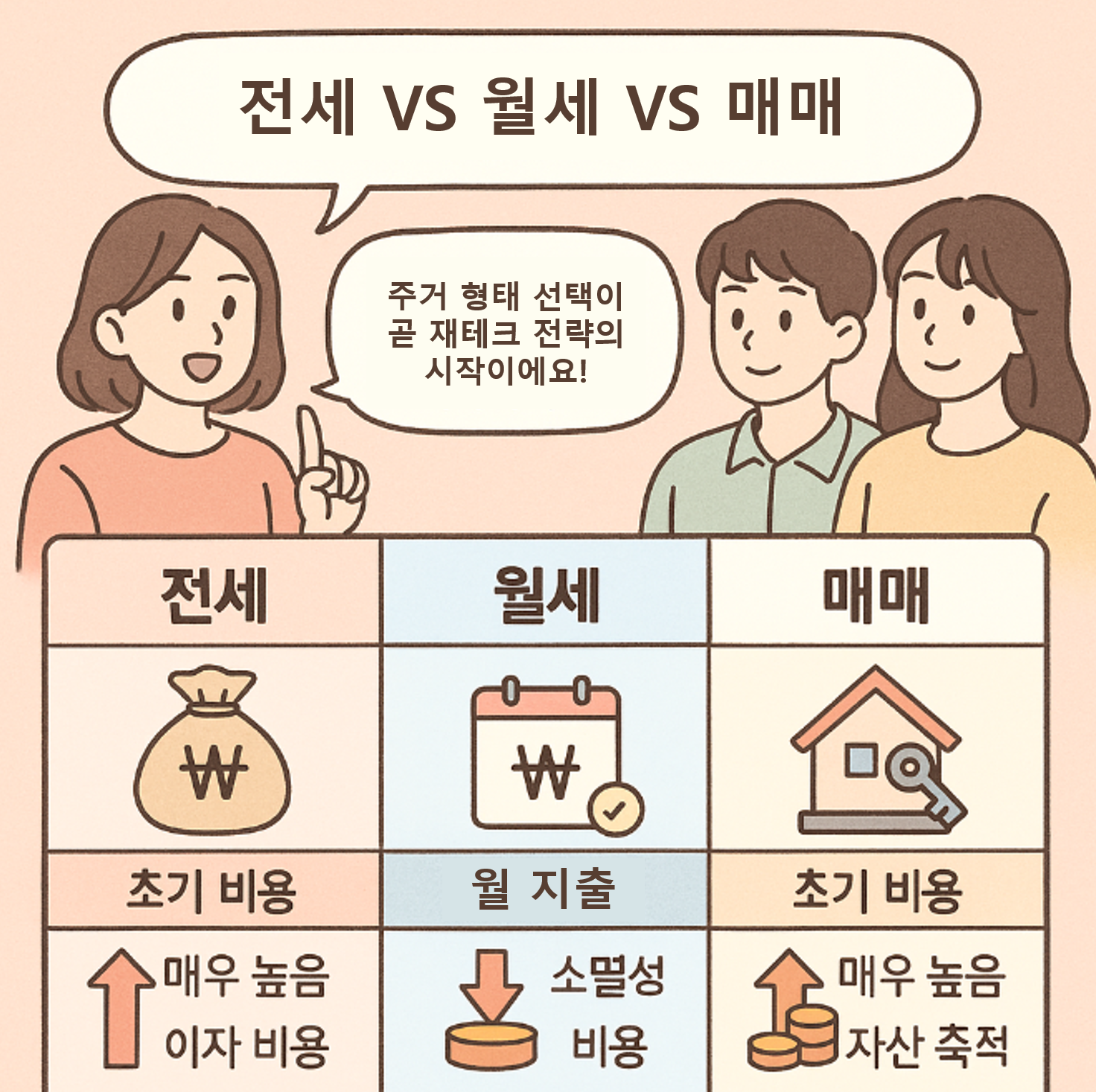 전세, 월세, 매매 중 어느 하나가 정답은 아닙니다. 중요한 것은 '여러분의 현재 자산 상황과 미래의 재테크 목표'에 이 주거 형태가 얼마나 부합하는가입니다.