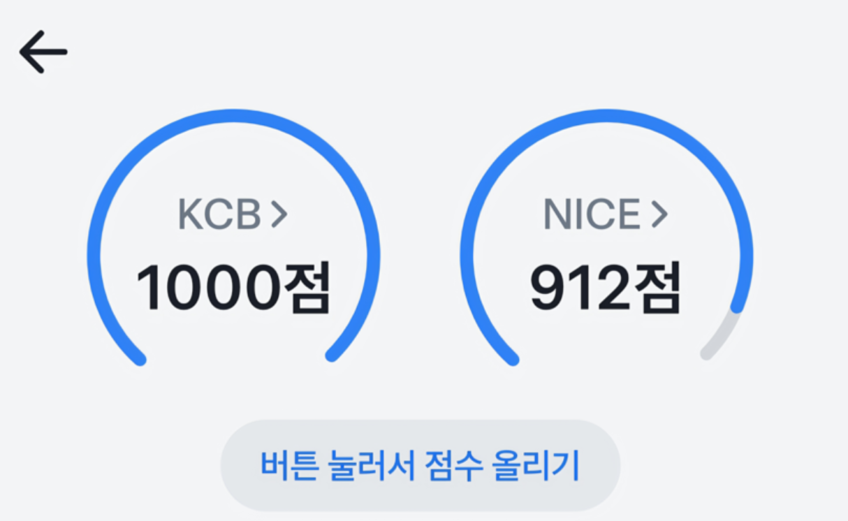 - 토스 신용 관리 화면에서 '점수 올리기' 또는 '점수 올리기 서류 제출' 버튼을 누릅니다.